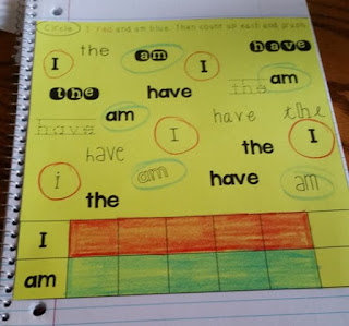 For the CIRCLE,COUNT,and GRAPH activity students will circle each weekly word using blue and red crayons, markers, or colored pencils. Then they will count up each word and graph it at the bottom of the page.